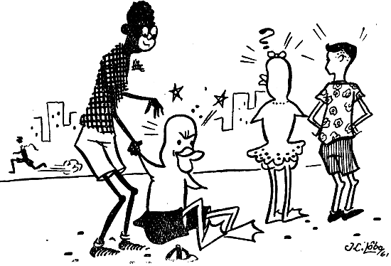 O moleque, inopinadamente, avançou sobre Patolo. Este, sem esperar, caiu. O garoto