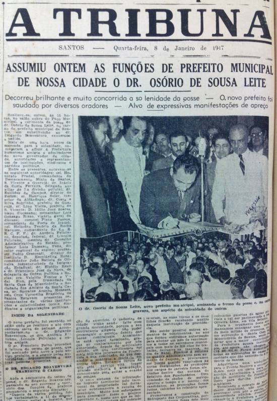 "Vai completar um ano que cheguei a esta sala para assumir o governo de Santos. Naquela época, o sr. interventor federal julgou conveniente buscar o prefeito fora de qualquer agremiação partidária. Descontado o desacerto da preferência do meu nome,