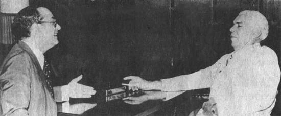 Com o governador Paulo Maluf, no instante em que era convidado para governar Santos