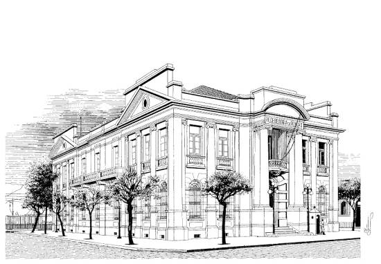 especialmente construído. Posteriormente, esse imóvel deu lugar ao edifício reproduzido no desenho, que durante muitos anos atendeu às necessidades da