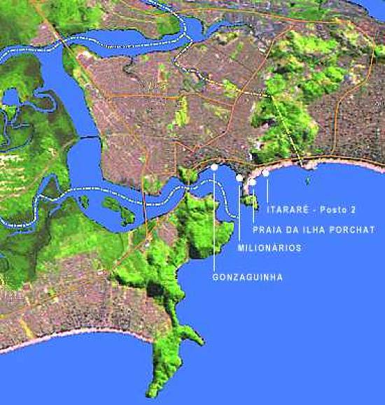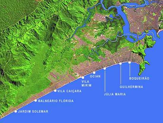 Praia Grande no canto inferior esquerdo;