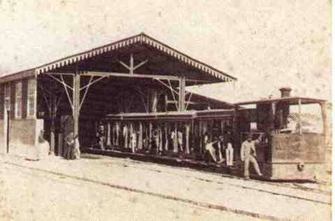 Estação de São Vicente, atual Praça Barão do Rio Branco. Onde a família Emmerich tocava a ferrovia: Henrique, José, António, João, Adão e Tiago -