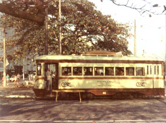 Completando este passeio pela história do projeto do bonde turístico na orla praiana de Santos, eis algumas fotos do bonde, em 1983, quando ele circulava em uma linha defronte à Basílica de Santo António do Embaré. As imagens foram cedidas a O Bonde/Novo Milênio pelo professor-doutor José Jorge de Morais Zacharias, da capital paulista: