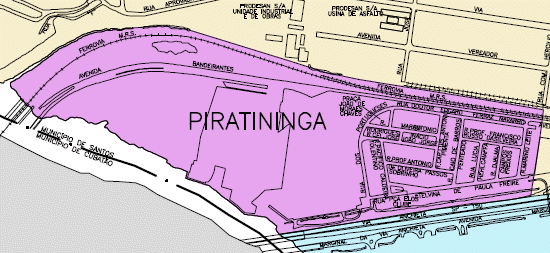 | Bairro situado entre a Via Anchieta e a ferrovia que o separa do bairro Alemoa, e junto à divisa com o município de Cubatão pelo braço de mar conhecido como Rio