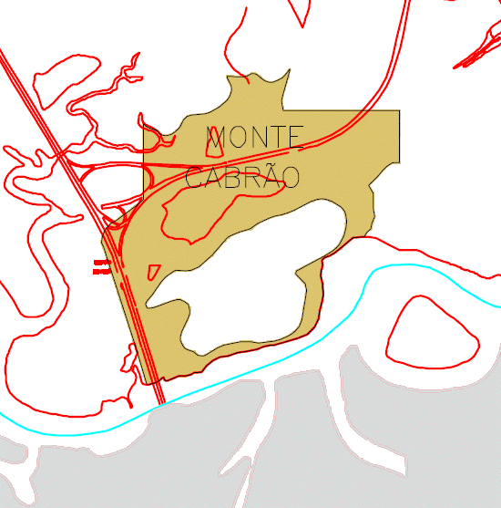 Cabrão, circundado na curva de nível de cota altimétrica 20 metros até seu cume. |