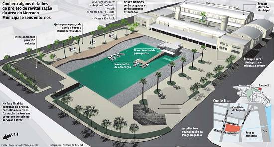 terminal de passageiros das catraias em frente ao restaurante Bom Prato e de um belo projeto urbanístico no entorno da Bacia do Mercado. É a