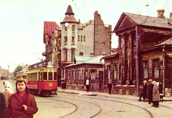 (Rússia) e seus bondes, em imagens de um álbum de fotografias editado em 1963 na extinta União Soviética, em