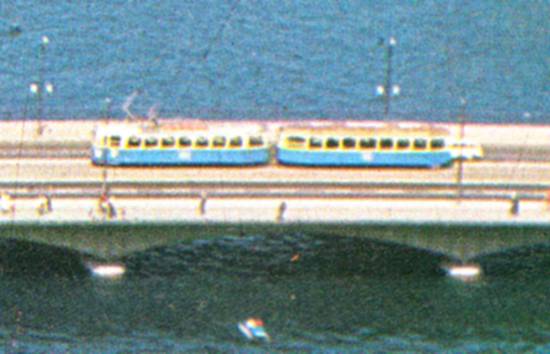 Bondes na ponte sobre o Rio Limmat, cerca de 1970