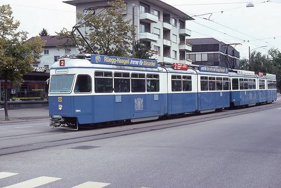 Bondes na linha 2 de Zurique, em foto de