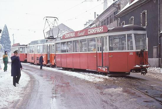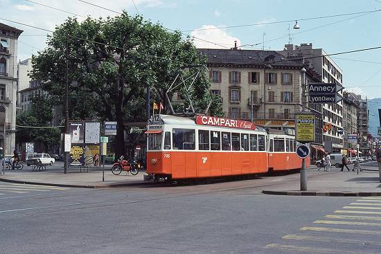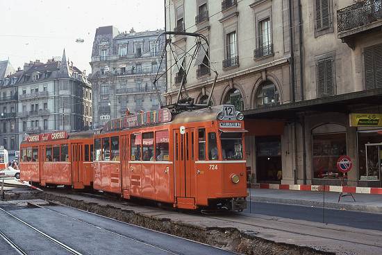 desvio, na década de 1980 na Rue de Genève. O reboque e o desvio não existem mais