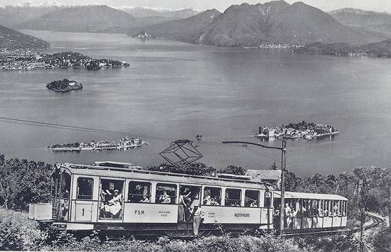 Stresa Mottarone, na Itália. A linha foi inaugurada em 12 de julho de 1911 e enderrada em 13 de maio de 1963.