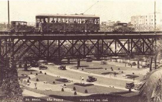 Na imagem acima, o Viaduto do Chá (em cartão postal circulado por volta de 1920), ainda