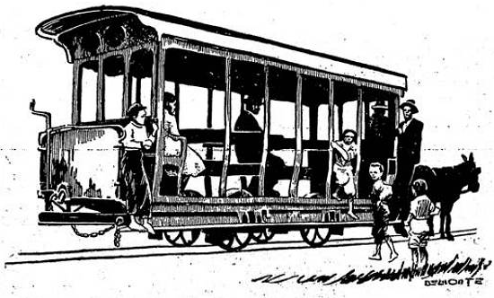 porque o bondinho não corria mais do que permitiam as pernas heróicas das alimárias que, embora chicoteadas pelo "motorneiro", não saíam