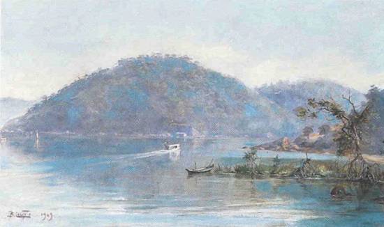 O tema também foi usado neste quadro não datado, um óleo sobre tela com 32x48 cm pertencente a colecionador particular, constando no catálogo com o título Marinha - Porto das Naus - São Vicente: