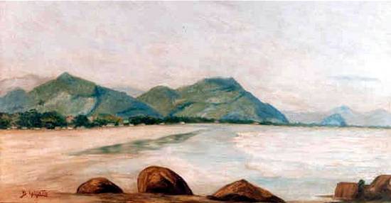 Também não datado, este óleo sobre tela de 53,5 x 100,5 cm tem o título de Marinha - Praia de São Vicente e