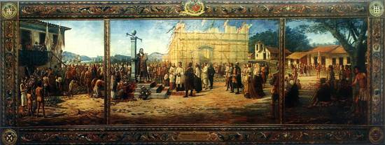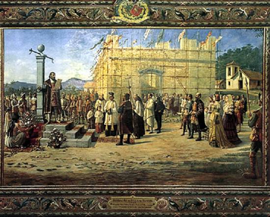 Santos), mostrando a fundação da Vila de Santos em 1545: