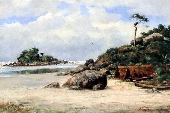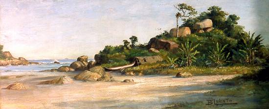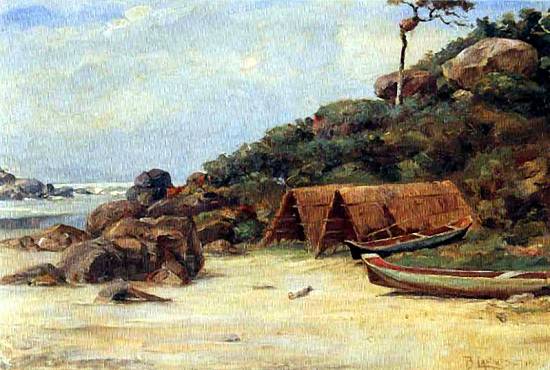 Prainha - Itanhaém, pintado em 1921, mostra o mesmo local, num óleo sobre tela, com 26 x 38,5 cm,