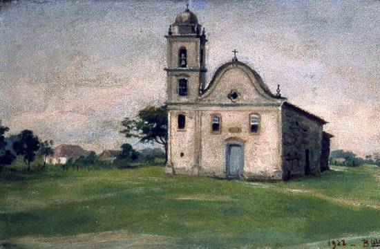 retratando suas construções religiosas. Como esta Paisagem de Itanhaém com Igreja Matriz de Nossa Senhora da Conceição, pintada em 1922 com a