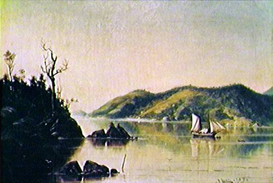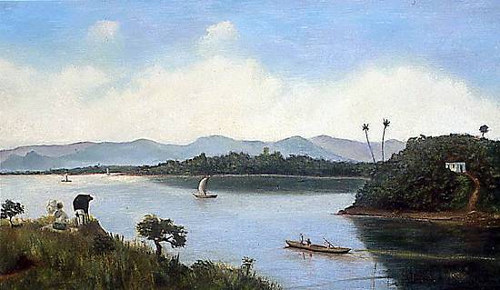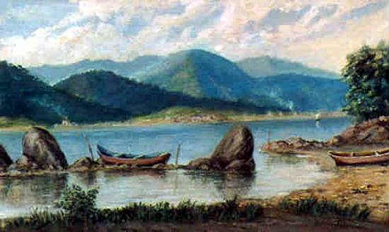 exata angulação em um cartão postal que circulou no início do século XX. Pertencente a uma coleção particular, este óleo sobre tela tem 19 x 32,5