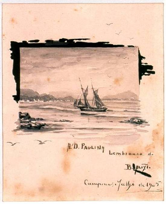 Esta aquarela, com 17 x 14 cm, datada de julho de 1905, é preservada no
