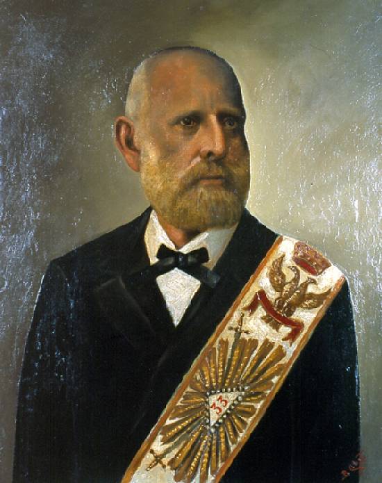 denominado Retrato de Ângelo Garcia de Souza Ramos e pertence ao acervo da Loja Maçônica Fraternidade de Santos: