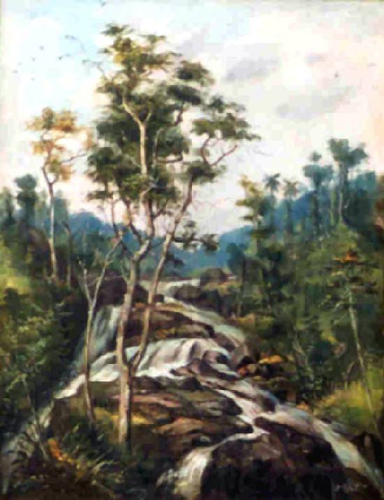 Paisagem com Cachoeira, sem data, é um óleo sobre tela com 42 x 32,5 cm, também pertencente a uma coleção
