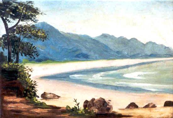 Também preservado em acervo particular, este óleo sobre tela de 25 x 36 cm não tem data. Seu título: Praia com