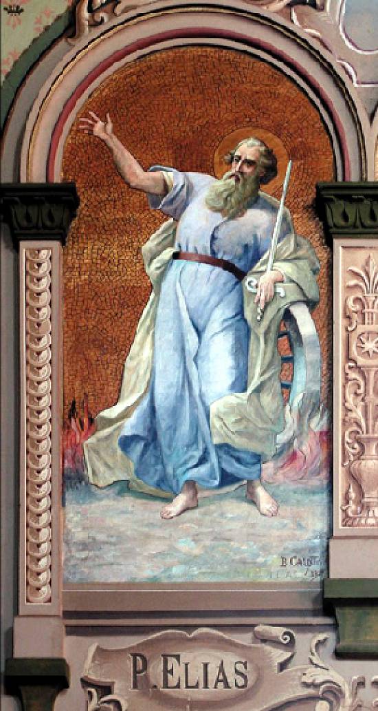 Datado de 1925, este óleo sobre tela de 200 x 100 cm, intitulado Profeta Elias, pertence à Igreja Matriz de