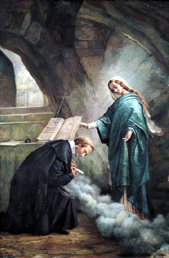 Datado de 1915, este óleo sobre tela de 303 x 200 cm, intitulado Santo Afonso, pertence ao Seminário Santo