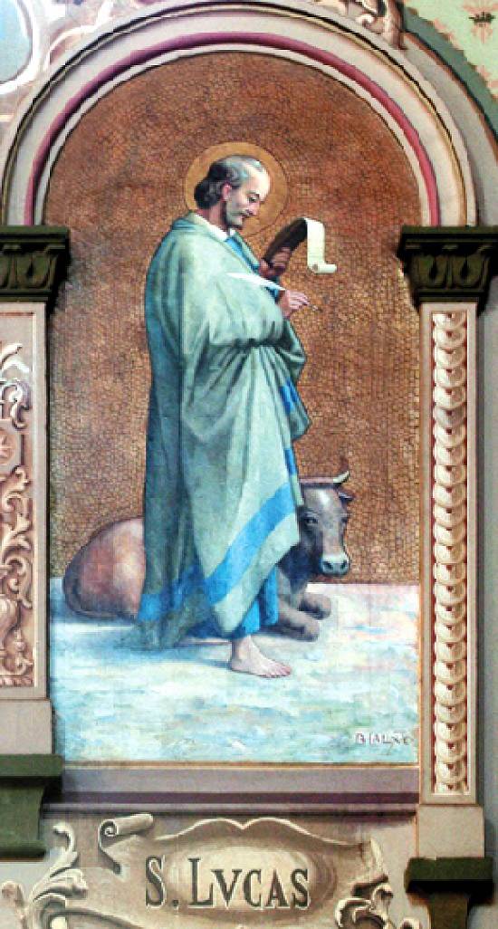 Datado de 1925, este óleo sobre tela de 200 x 100 cm, intitulado São Lucas, pertence à Igreja Matriz de São