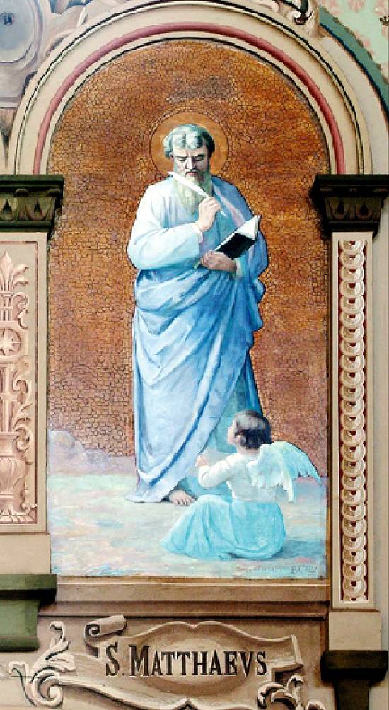Datado de 1925, este óleo sobre tela de 200 x 100 cm, intitulado São Mateus, pertence à Igreja Matriz de São
