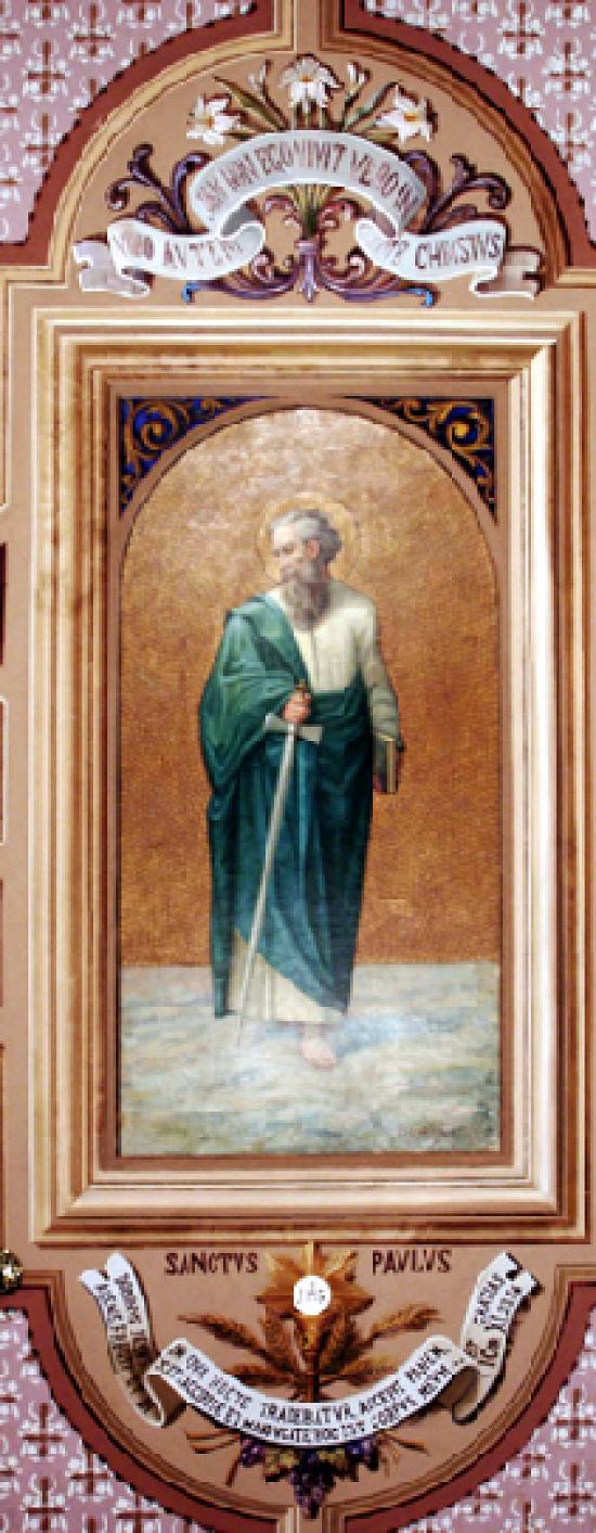 Datado de 1925, este óleo sobre tela de 200 x 100 cm, intitulado São Paulo, pertence à Igreja Matriz de São