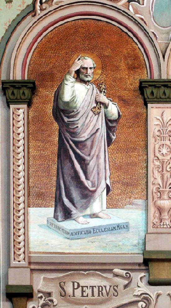 Datado de 1925, este óleo sobre tela de 200 x 100 cm, intitulado São Pedro, pertence à Igreja Matriz de São