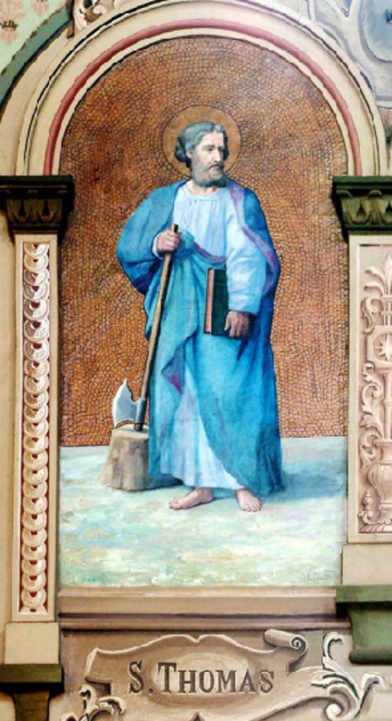 Datado de 1925, este óleo sobre tela de 200 x 100 cm, intitulado São Thomas, pertence à Igreja Matriz de São