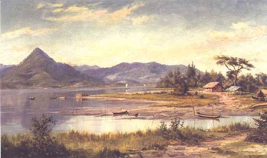 Outra vista do mesmo local, em sentido oposto, vendo-se ao fundo ainda o morro Chichová. O quadro ("Baía de São
