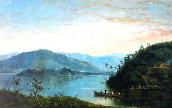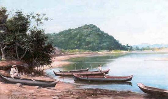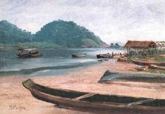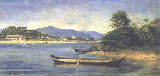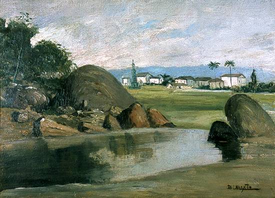 Este óleo sobre tela, sem data, com 28x35 cm, mantido em coleção particular, tem o nome Itanhaém - Rio Branco x Rio Negro :