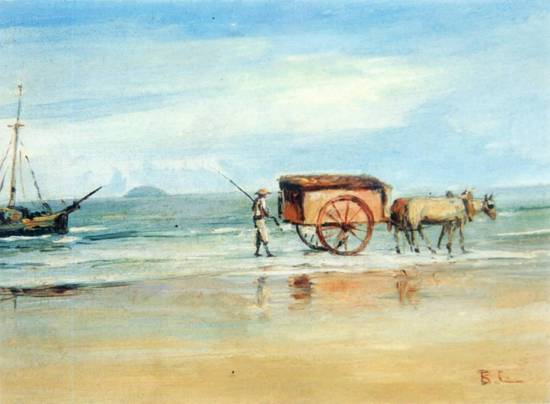 costeiras. A obra é intitulada Praia Grande com Carro e Carroceiro: