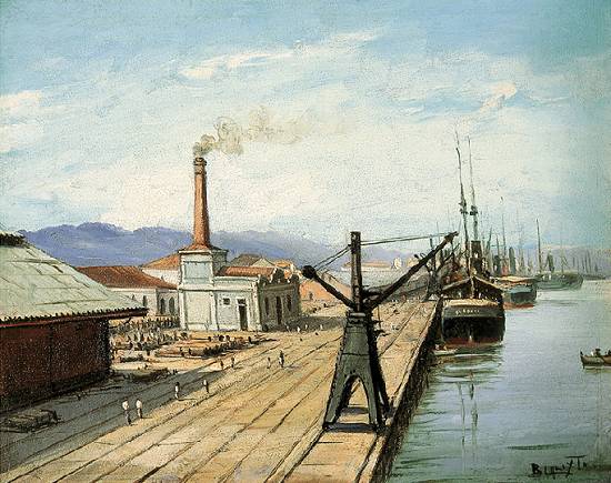 Outra reprodução fotográfica do quadro, simplesmente denominado Porto de Santos: