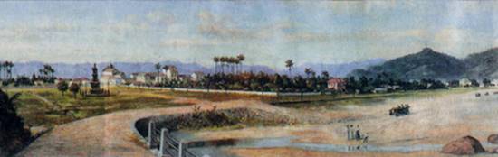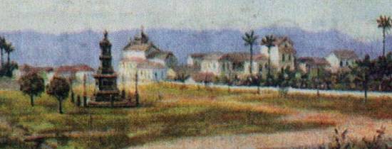 Outro detalhe dessa tela mostra o monumento existente no centro da Praça 22 de Janeiro/Parque Hipupiara: