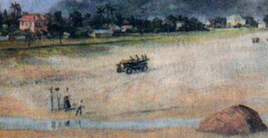 Um dos então raros automóveis da Baixada Santista já circula pela praia: