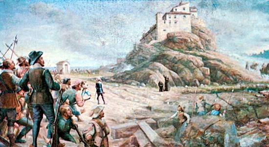 rochedo que domina a entrada do porto de Vitória) quando da terceira invasão holandesa daquele local, em 1653 (dois anos após a colocação da pedra