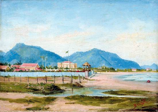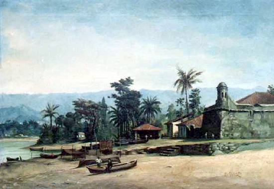 Com o título Forte de Bertioga e sem data, este óleo sobre tela de 45x63 cm é preservado em uma coleção