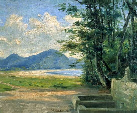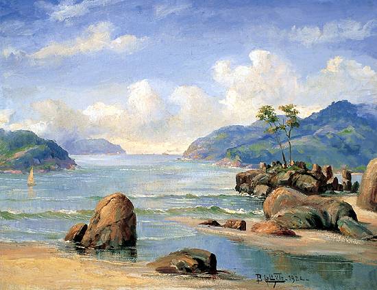 No mesmo local, em 1920, Calixto produziu este óleo sobre tela com 28x49 cm, preservado em coleção
