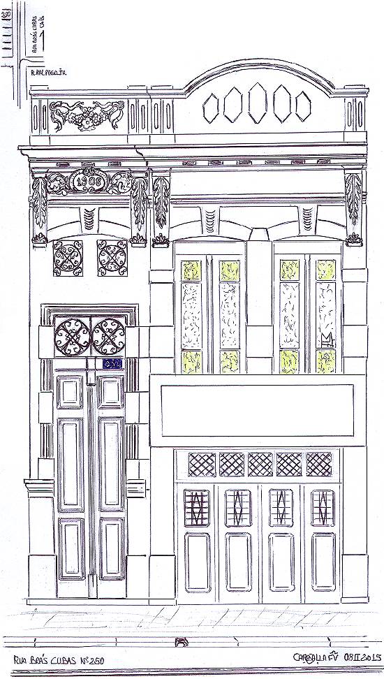 São edificações de uso comum, comerciais e residenciais, muitas delas demolidas, raramente preservadas, e que nesses detalhes captados pelo professor revelam aspectos curiosos de uma época já desaparecida. Quando existente, a linha do bonde é registrada nos desenhos, e uma marca registrada desses trabalhos costuma ser a existência de um vidro quebrado numa janela, sempre da mesma forma: