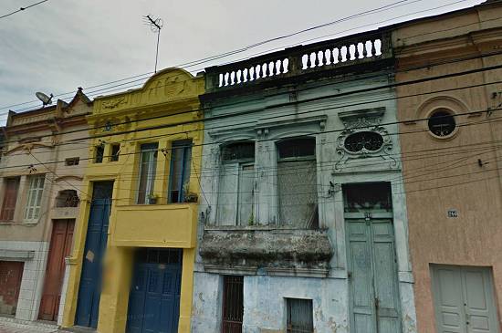 Rua Braz Cubas, 250 - "Construída na primeira década do século XX, representa a ocupação urbana em direção à praia, eliminando chácaras e sítios, em estilo art'nouveau. Foi ereta com porão alto que posteriormente foi habitado, até os dias atuais. Sua sacada de alvenaria e metal trabalhado se perdeu e seus adornos estão muito estragados devido ao tempo" (8/2/2015)