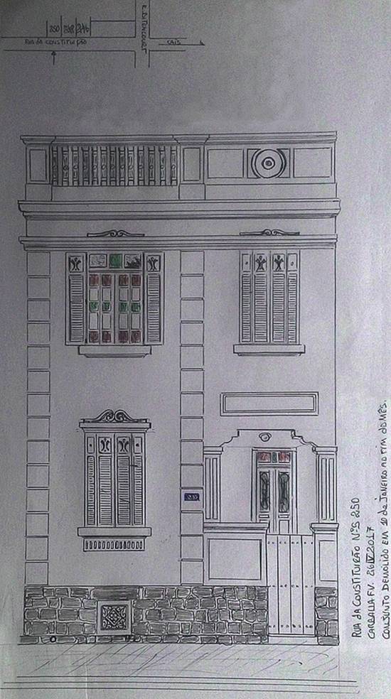 Rua da Constituição, 250 (desenho realizado em 24 de abril de 2017)