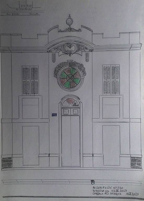 Avenida Senador Feijó, 210, demolida em 2 de abril de 2017 (desenho realizado em 1º de maio de 2017)