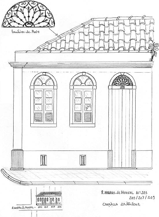 Rua Marquês de Herval, 203/205/207/209. Desenho feito em 27 de janeiro de 2002. Pode ser vista em outra perspectiva