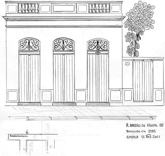 Rua Marquês de Herval, 188 - demolido em 1985. Desenho feito em 15 de dezembro de 2001