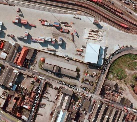 O local em abril de 2011, no Valongo, visto pelas câmeras do programa Street View, e em visão por satélite do Google Maps (consulta em 9/1/2012)